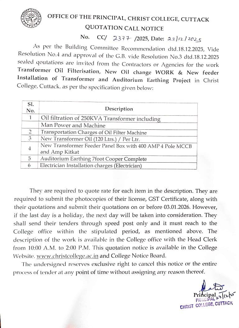 • Christ College is an affiliated institution under Utkal University. All syllabus and examinations are designed by the board of studies of Utkal University. The curriculum focuses on both industry relevance and traditional academic excellence.